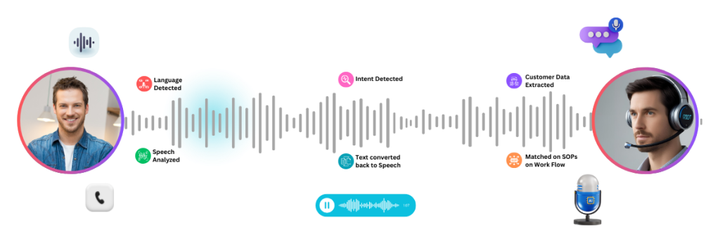 AI Voice Agent is a virtual AI assistant that can receive and make voice calls. It responds to customer questions, qualifies leads, transfers calls, sends follow-ups, and integrates with your systems, all via natural, empathetic conversations.